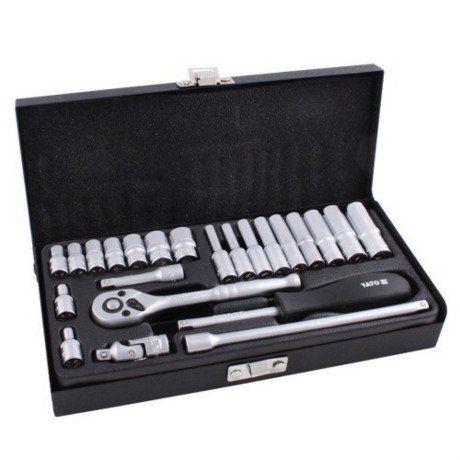 Bộ khẩu tay vặn 1/4" 23 chiếc hệ mét YT-14421 là sản phẩm được nhập khẩu 100% từ Yato tools. Bộ khẩu gồm tay vặn, khẩu, khẩu đầu tuốc nơ vít và phụ kiện đi kèm với đẩy đủ các kích thước từ 4mm đến 13mm. Sản phẩm không thể thiếu dành cho việc sửa chữa và bảo dưỡng ô tô, máy móc, các thiết bị công nghiệp...