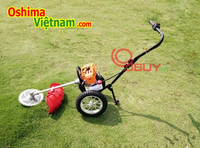 Máy chạy bằng xăng, trọng lượng nhẹ, được trang bị hai bánh xe và tay đẩy dài, giúp người dùng cắt cỏ tại khu vực có diện tích rộng một cách dễ dàng, nhanh chóng.
