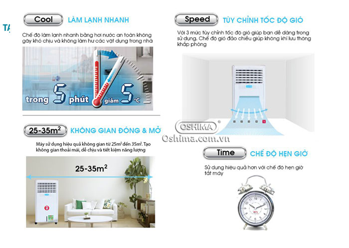 Máy làm mát Oshima OS110-3500 làm mát với ba tốc độ gió