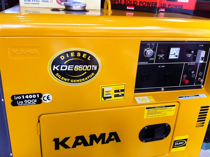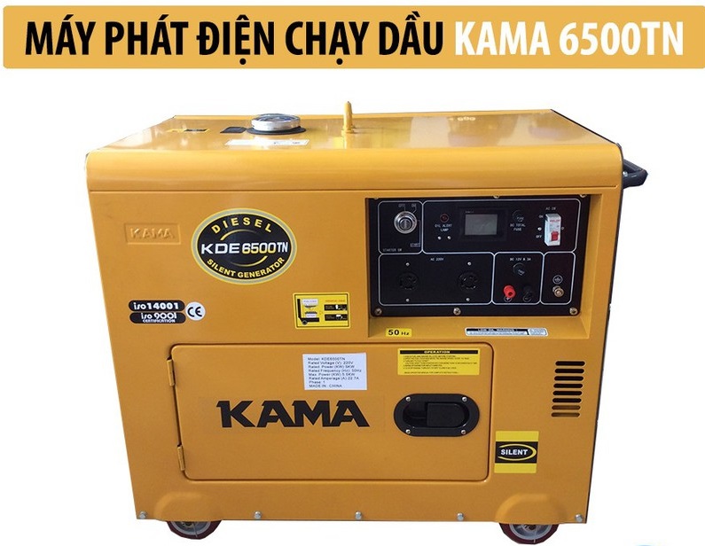 Với thiết kế đề nổ, vỏ chống ồn, tạo công suất tối đa 5.5KW, công suất liên tục 5KW, tiêu hao nhiên liệu từ 1 đến 1.5L dầu Diezen trong 1 giờ (Tiết kiệm nhiên liệu đến khó tin, nhưng đây là sự thật qua sử dụng thực tế). Chính vì thế Máy phát điện Diezen Kama KDE6500T phù hợp nhất để sử dụng trong mọi gia đình hiện nay mà không một loại máy nào sánh kịp. Khi dùng máy Kama KDE6500T bạn có thể sử dụng toàn bộ thiết thiết bị điện trong nhà và 2 điều hoà 9000 hoặc 12000BTU.